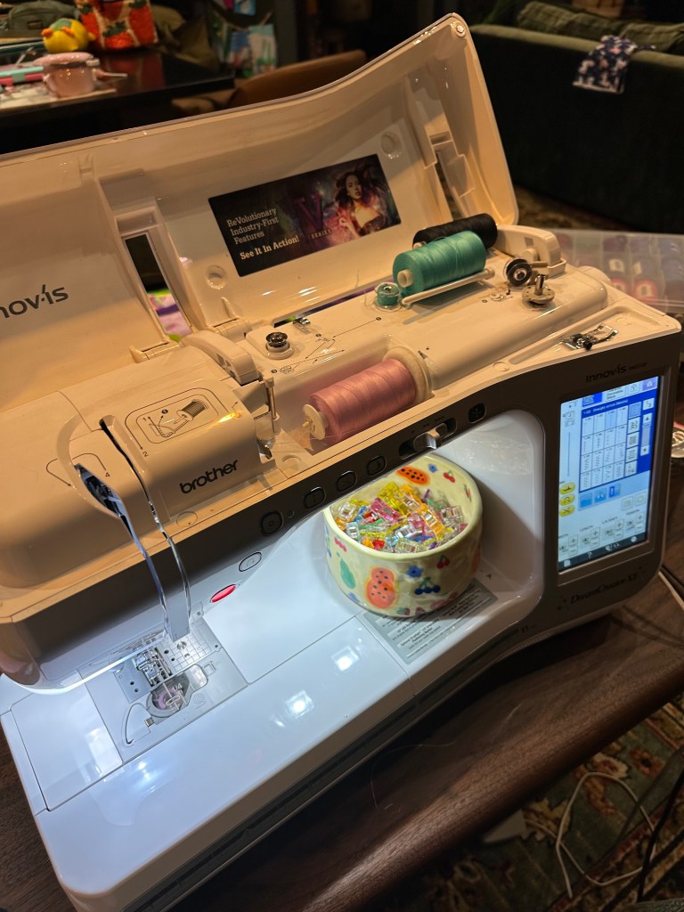 You’ll use all of these at some point. I’m team clips for everyday projects (no holes in fabric!). Safety pins are great for big stuff like layering quilts together or pinning a long banner all at once. Pins work well too, especially when clips won’t hold in the right spot. Just make sure everything is secure before you start sewing — a well-pinned/clipped project makes things go WAY smoother.
